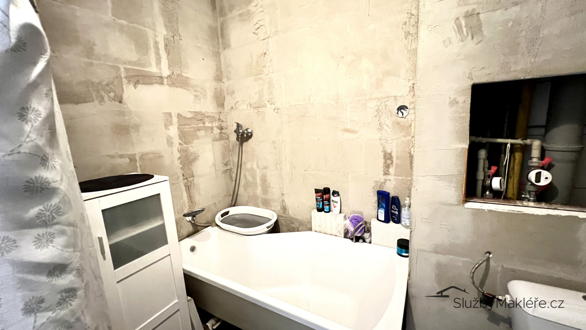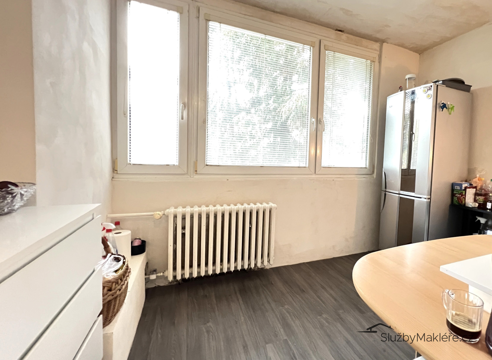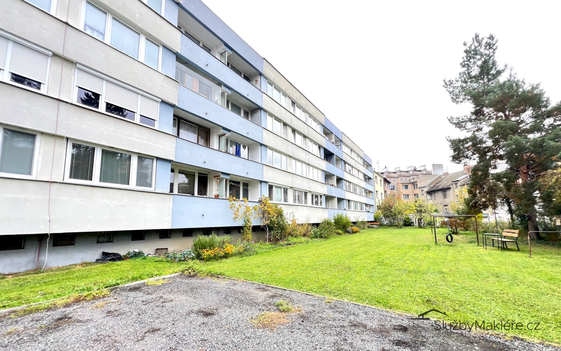 Nachází se ve zvýšeném přízemí udržovaného domu s vnitroblokem, kde můžete zaparkovat nebo posedět v klidu a zeleni. Byt prošel částečnou rekonstrukcí – má zděné jádro (WC), elektřinu v mědi a je připraven k okamžitému bydlení. K bytu patří prostorná lodžie (4 m²), sklep (2 m²) a možnost využívat společnou kočárkárnu/kolárnu.