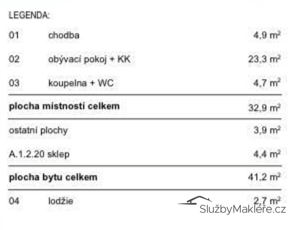 - celková užitná plocha včetně sklepa: 41,2 m²