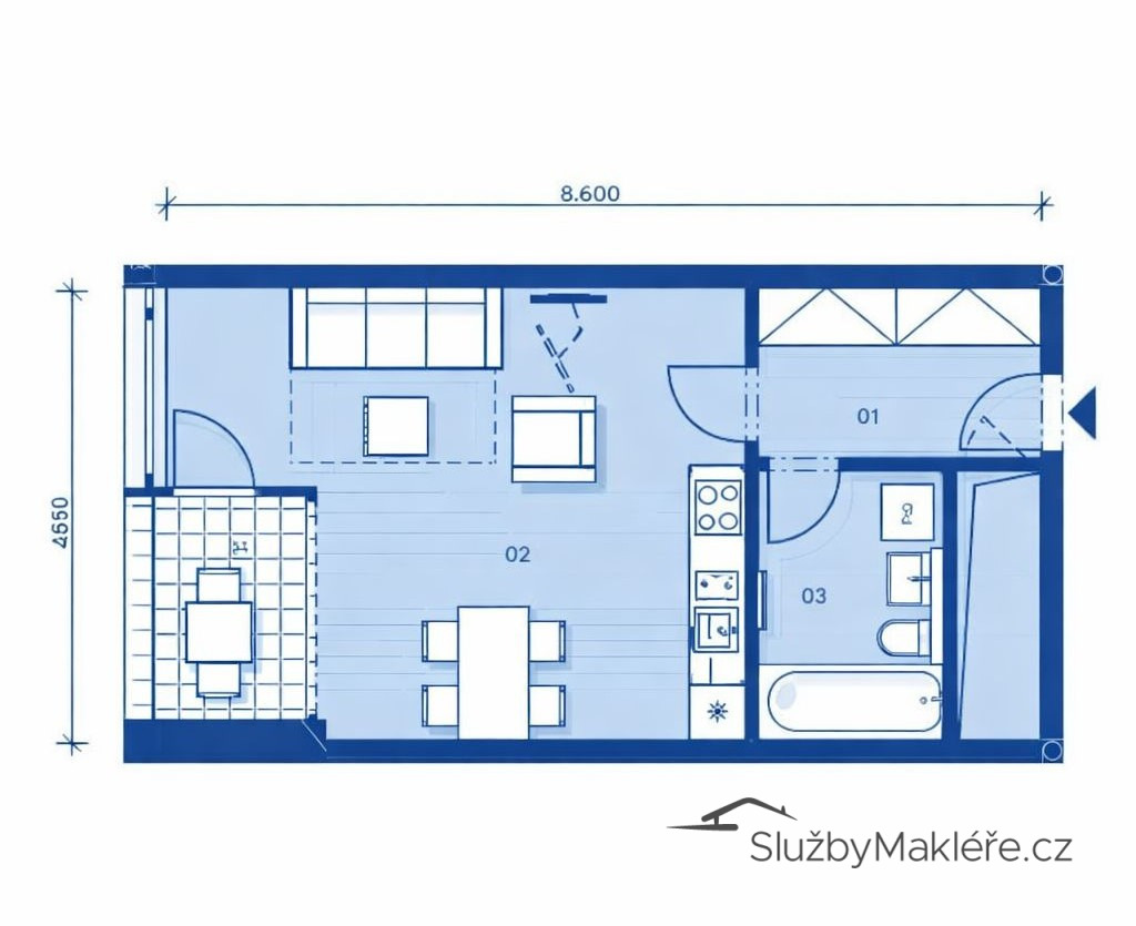 Byt má velmi praktickou dispozici a díky velkým proskleným plochám je světlý a slunný. Vyvýšené umístění lodžie zajišťuje dostatek soukromí i bezpečí.