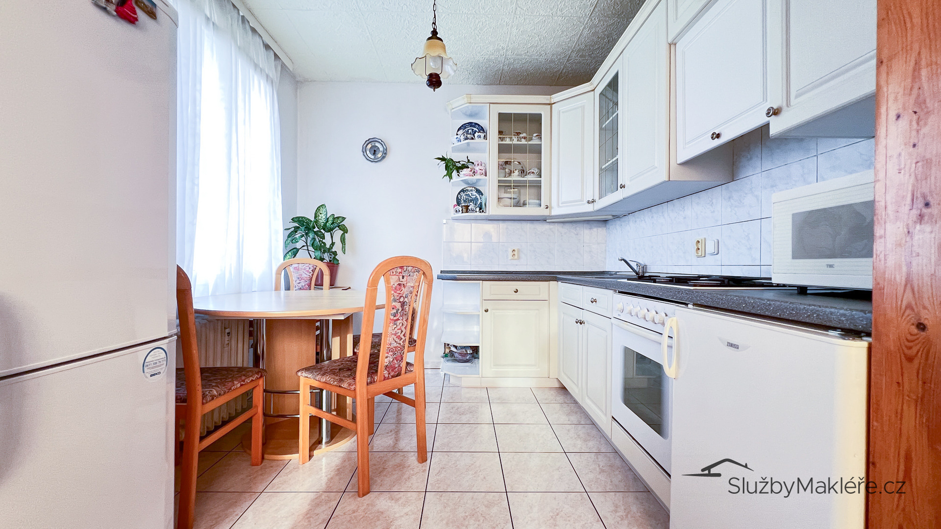 Dispozice bytu je velmi praktická: centrální chodba, ze které vedou samostatné vstupy do dvou neprůchozích ložnic, koupelny, samostatného WC i obývacího pokoje. Obývací pokoj je průchozí a umožňuje vstup do kuchyně vybavené plynovým sporákem a kuchyňskou linkou. Byt je ve velmi dobrém stavu, což zajišťuje pohodlné bydlení bez nutnosti okamžitých rekonstrukcí.